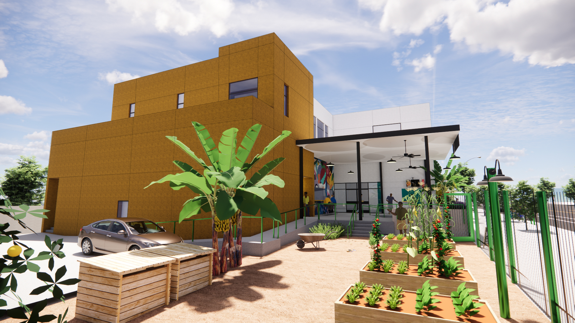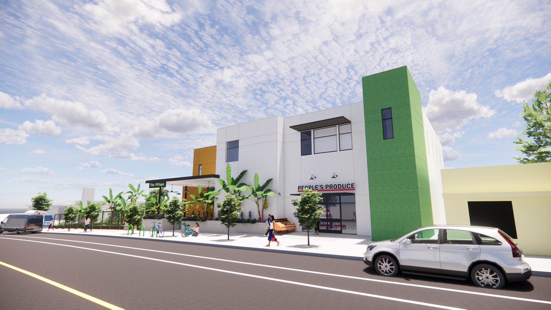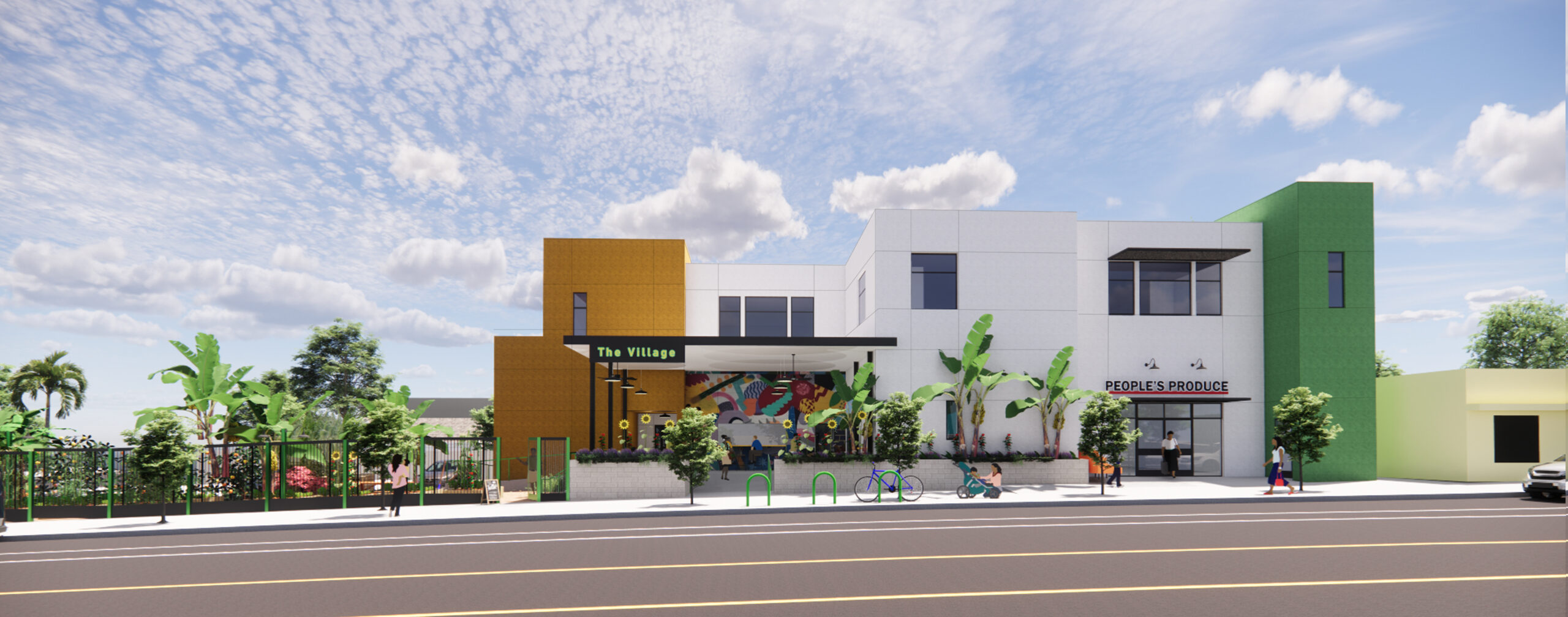 The Village Community Food Hub will be a 100% electrical,  ADA-compliant building that contain a neighborhood grocery store offering fresh, locally-sourced produce along with other staple and perishable foods,  a fully-equipped commercial kitchen and cold and dry storage will support community-led food production, aggregation, and distribution, food stalls for entrepreneurs serving locally sourced healthier food options, and a community garden.